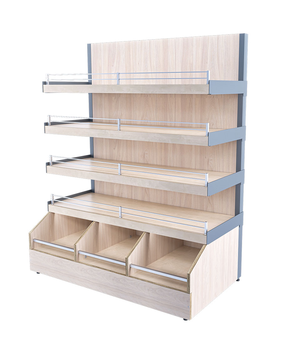 Boulangerie Evolution ist ein Panoramadisplay, das sich für die Präsentation von verpackten Backwareneignet. Das Regal hat 5 Ebenen mit 4 Regalen sowie einen offenen unteren Teil mit Metalleinfassungen.